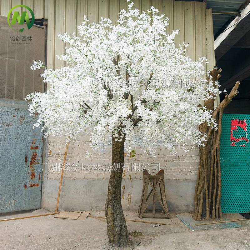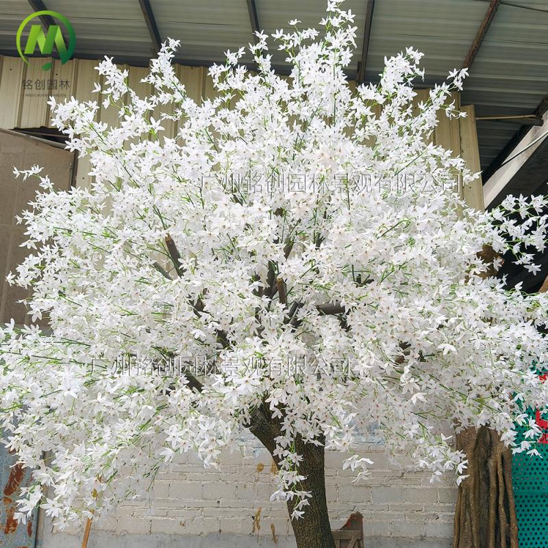 假花仿真花造景大树 大型玻璃钢婚庆家居装饰加密十字花丁香花树