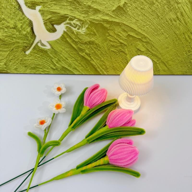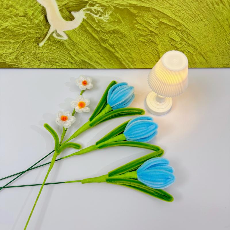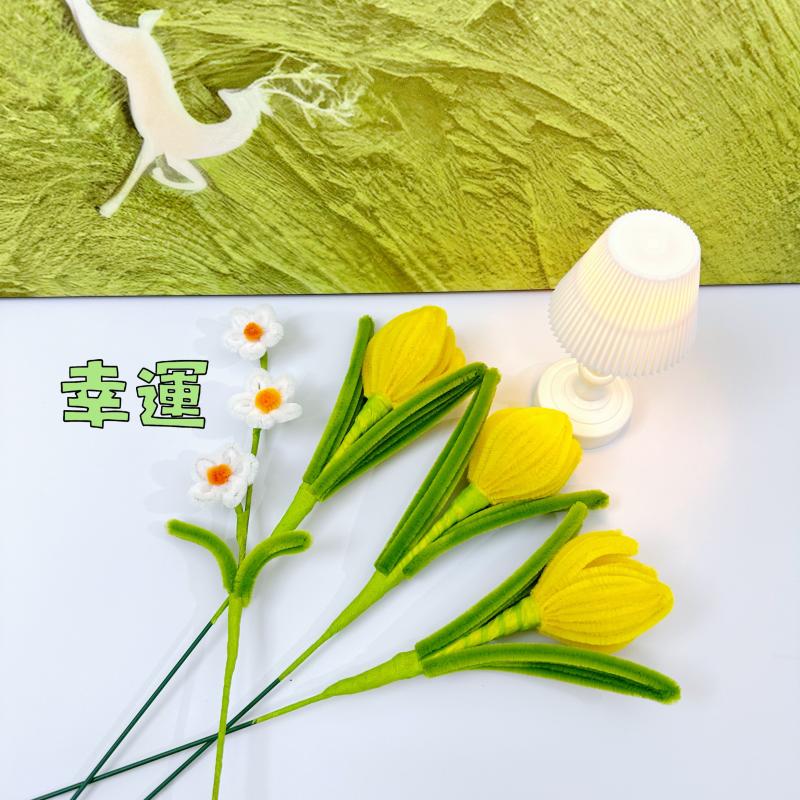 品名:扭扭棒郁金香仿真花 材质:特密毛线绒,无异味,环保材质 颜色:多色可选,不掉色 创新:一款比真花还鲜艳的手工花,比市面上任何仿真花都逼真 创意:造型多变,可自行diy各种盆栽,插花等造型 优点:纯手工制作,告别机器硬邦邦的套模,造型逼真,颜色鲜艳,触感柔软,与宠物毛发相当。 存放及保养:可用风机吹掉灰尘,产品不防水,建议放在干燥位置,保存妥当可存放数年。 适用场景:可用于花艺造景、盆栽、花束、居家摆件、婚庆布场、商务用花等多用途