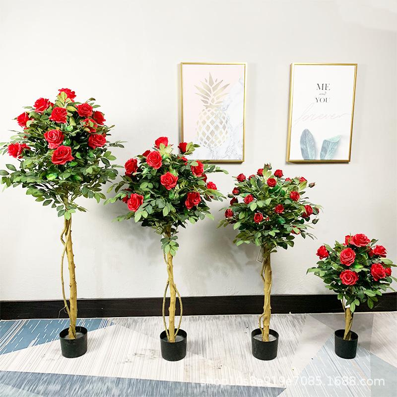 仿真玫瑰树人造盆栽景观摆放假植物酒店民宿装饰盆栽假玫瑰树